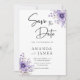 Lila Blommönstrad Akvarellbröllop Spara Datumet