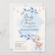 En söt björn i baby är sitta på ett moln, som håller blå och beige ballonger