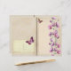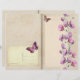 Den här dubblan på uppslaget stil papper har en svag bakgrund för blommönstret som kan släcka vackra lila blommor och fjärilar. Lägg till gammalt vykort för papper och vintage ge som en kollage. Baksidan av de papprare har svimmat linjer för dina tankar, aspirationer och muskler. Fäst bara om du vill skapa två sidor som skapats av redot. Dessa är underbara för skräpböcker, kollager och för att de lägger till i journal. Många andra stil-formgivningar i vintage finns tillgängliga i vår Zazzle-butik. Observera att ingen faktisk kollage används på detta papper och att eventuella pappra effekter och skuggeffekter ingår i utformningen.