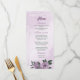 Unikt bröllop-menykort med romantiska dammiga löv för lila blommor och grönt. OM DU VILL HA MER MATCHING PRODUCTS klickar du på samlingen ovan eller kontaktar mig.