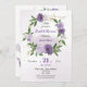 Drömlig romantisk lila blommor och grönt löv arrangerad på en guld-cirkel inbjudningskort för möhippan. glitter-detaljerna simuleras