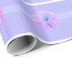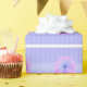 En söt med lila blommor på en mönster-diamantbakgrund med rulla-mönster-band.