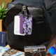 Denna briljanta bagagetapp kan anpassas för att lägga till namn, adress och mobilt nummer, samt för att uppmärksamma bagaget när det kommer. Öga som fångar lila blommor står ut, och tillför en livlig beröring till bagaget!