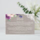Detta specificerar lila blommor och snörebröllop mellanläggskortet är perfekta för en landsbyggsbröllop. Den lantliga chic designen presenterar en härlig ordning av plommonlilor, lila, och rodnadrosan blommar med blom- snöre för vit på en elegant linnebakgrund.