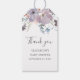 Lila blommor. Tack för blommigtens babydusch Presentetikett