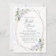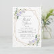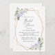 Vänner och familj i inbjudan i stil och ange tonen för er speciella dag med detta charmerande inbjudningskort för möhippan. Utformningen har lila- och vitvattenblommor, grönt, guld konetti och guld ram på vit bakgrund.