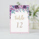 Lila blomsterchampagne guld & ränder konfetti akvarell blomsterbröllop bord nummer med trendig borstskrift! Kolla min butik för att se hela bröllopspasset för denna design!