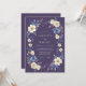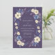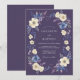 Denna förtrollande design har en djupt lila bakgrund prydd med en målerisk blomsterkrans i nyanser av kräm, blå och lavendel. Ömtåliga blommor och frodig lövverk skapar en elegant och romantisk atmosfär för din stora dag.