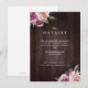 Vattenfärg botaniskt blomstermönster i lila, mullbär, dammig ros och persikofärg på mörk lada trästruktur bakgrund, med modernt skrivstil och text, elegant och stilfull, fina bröllopskort för rustika botaniska trädgårdsbröllop under höst och vinter. Se alla matchande delar i kollektionen.