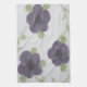Stora djupfärgade blommigtar med lila blommar med grönt löv, på lätt grått. Designer home decor kökshandduk
