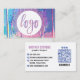 Det här moderna, chic, elegant och glamorösa affärskortet är perfekt för alla konstnärer, hårstylist, estetiker, estetiker eller skönhetsalon. Den har en faux-utskriven rosa, lila och blå holografisk zigzag-folie och en faux-utskriven glatt konglomerad cirkeldesign med flera färgader och innehåller företagsinformation, logotyp och rosa på baksidan. Det är ett utmärkt sätt att marknadsföra och starta nya företag. Designen innehåller en vit handskriven namnteckning skripttypografi. Det är elegant, coola, unikt, trendig och snyggt. perfektens kort är till för att locka kunder.