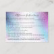 Denna glamorösa, majestätiska, chic och moderna ögonfransförlängningar efter omvårdnadsinstruktioner affärskort är perfekt för en affärskvinna i snyggt och trendig professionell. Den har en handskriven namnteckning skript med svart typsnitt, typografi och faux-tryckt lila, blå och teal grönt nebula galaxy glatt glitter-bakgrund inspirerad av aurora ljus. Det är unikt, professionell, trendig, contemporary och snyggt. perfekten är hur du annonserar ditt företag och formaterar marknadsföring och reklammaterial för dina kunder. ***VIKTIG DESIGN-ANMÄRKNING: Om du vill ha en anpassad design-begäran, t.ex. matchande produktbegäranden, färg-ändringar, placeringsändringar eller någon annan ändringsbegäran, klickar du på meddelandeknappen eller skickar e-post till designern direkt på lafemme.art@gmail.com. Du kan till och med skicka e-post till henne om du vill ha en helt ny anpassningsbar och design.