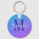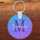 Lila Blue Ombre Glitter Sparkles Monogram Keychain Söt Glamor-design på runda knappar i nyckelkedjan gör en underbar gåva eller favoritidé för en födelsedag, bröllop eller något tillfälle. Enkel mall som är tillgänglig för att mata in din egen namn
