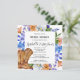 Sommarvattensblommor skapar en elegant ram på detta moderna kvadratinbjudningskort för möhippan. Lila, blått, rosa och vita daisy, läppar och glömska-mint gör söten arrangemang. Ett par cowboystövlar lägger till en western vibe. Det här objektet är en del av den tidslösa Wildblomsamlingen.