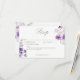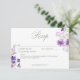 Fånga den lilla roliga elegansen med vår vackra boho blommigt bröllop-svarskort utan val av middag. Fintliga buketter av lila- och lavendelblommor, som är handmålade i en lös vattenfärg i stil, är konstnärligt placerade med grönt. Den här designen frammanar en känsla av naturskönhet och romantisk charm, perfekt för ditt utomhus- eller trädgårdsbröllop. Skapat av Farmhouse Press.