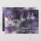 Detta är en del av en serie passande bröllopskort och accessoarer med en strålande lila ljusflare bokeh-foto bakgrund. Över detta återges nyckelord som eleganta typografiska accenter med en vacker scriptfont från min samling. I detta kort står det "spara datumet" med "fancy typsnitt". Använd mallfälten för att enkelt lägga till dina egna detaljer. Redigerbara textelement kan ändras till valfritt typsnitt om du önskar något annat. Kolla in de andra passande designerna för dina behov gällande bröllops- och evenemangsplanering. Kontakta mig för specialbeställningar och hjälp med anpassning. // 32 //