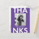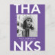 Trendig, ett modernt studenten-tack som du har med student-fotot med "tack" i fet vit stil och lila bakgrund. Anpassa framsidan av fotot. Tack för att du skrev på studenten genom att lägga till student namn, namn och studenten. Baksidan av fototacket i studenten innehåller returadressen med utrymme för ditt skrivna eller handskrivna meddelande.