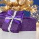 Lila Bow Silver Ribbon Glitter Background Gift Wrapping Papper