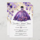 En vacker vattenfärgad lila som är försedd med små blommor av rosa ros-blommigt är försedd med pastelliserat sötningsmedel av lila och löv tendrils. Två små fjärilar snurrar runt utsidan av klänningens bodice. Under boll är lyxmanusskript och fetstilmallar för anpassningsbarnas ordalydelse. Denna inbjudan är perfekt för en sommar, vår eller höst-bröllop som hålls i trädgård eller utomhus. Fira bruden som ska vara med den här lyxiga, trendig- och fantastiska designen som är perfekt för en möhippa, Quinceañera eller ett företag som lanserar sina nya bröllop-klänningar till kunder.
