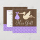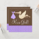 Lila Brun Stork Fläckar Flick Babyfest Inbjudningar