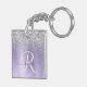 Anpassa enkelt den här chicen av trendig-nyckelkedjan med söt silver mousserande glitter på en lila borstad metallbakgrund.