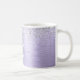 Anpassa enkelt den här chicen av trendig kaffe i mugg som är utformad för att ge söt silver mousserande faux glitter på en lila borstad metallbakgrund.