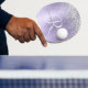 Anpassa enkelt trendigets chic pingpongpadlar med söt silver mousserande glitter på en lila borstad metallbakgrund.