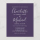 Med din fotografering, signaturstil namn, kan denna eleganta lila bröllopsinbjudan anpassas med din information i chic bokstav. Designad av Thisisnotme©