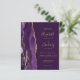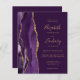 Den vänstra kanten på denna eleganta moderna bröllopsinbjudan har en lila akrylfärg agat kant med falskt guld glitter. Den anpassningsbara texten kombinerar guld färgad handskrift, kopparplåt och kursiv stil på en djup lila bakgrund. Baksidan ger utrymme för detaljer om bröllopet på en solid lila bakgrund, tillsammans med en QR-kod som gästerna kan skanna för att besöka er webbplats och svara.