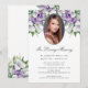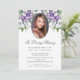 Elegant lila blommigt fotomemorial service/firande på livs-/begravningsinbjudan med ett foto som är försedd med lila calla lilies.