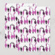 En teckning av sex katter som visar upp sina söta lila-knapp i ett upprepande mönster.