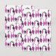 En teckning av sex katter som visar upp sina söta lila-knapp i ett upprepande mönster.