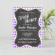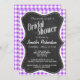 Lila Checkered Gingham; Vintage Chalkboard Inbjudningar