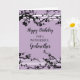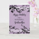 Födelsedagskort för gudmor med söt lila och svart körsbärsbil blommar träd och tankfull vers.