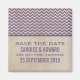 Modern med en vintage twist är Chicen Chevron Spara datum magneter. Den här utformningen har en antik papper bakgrund och en zigzag chevron mönster i lila. Enkel att anpassa, lägg bara till information om bröllop. Klicka på Anpassa om du vill söka efter fler anpassningsalternativ.
