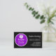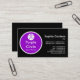 En affärs-/profilkortsmall med en cirkulär vit lila avsedd för företagsinformation och logotyp. Den logotyp som används här kommer från Zodiac BT, som är en av Zazzles typsnitt bild. Det kan naturligtvis ändras, ersättas eller raderas och texten kan ändras och/eller justeras genom att du trycker på knappen Anpassa. Kortets baksida har lämnats tom med samma bakgrund färg som framsidan, som kan anpassas ytterligare om så önskas.