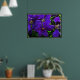 Den här poster fylls med fantastiska blommar för lila och magenta av clematis. De vackra gyllene frimärkarna avskärmas av de våldsamma nyheterna och nyheterna från grönt lövs genomsökta bakifrån.