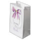 Snygg liten presentpåse för bröllopsdusch med lila coquettebåge-band. Orden kan ändras för att passa dina egna detaljer eller krav