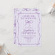 Lila Coquette Bow Pastel Lavender Födelsedagsfest Inbjudningar