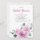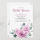 Elegantens moderna blommigt mitt under sommaren har inbjudningskort för möhippan en bukett med vattenfärgsdahlia i skuggor av lila och rosa, med lush grönt botaniska löv och eukalyptus. Hitta fler matchande utformningar och variationer från min "firandestund"-butik.