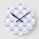 Lila Daisy Flower Baby Shower i Bloom Party Round Clock illustrerad av internationell designer Kathrin Legg