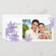 Ange tonen för kommande barn med elegantens Lila Daisy på det vita Bröllop spara datum-fotokortet. Anpassa den med bridens och brudgummens personliga namn, specifikt giftermål-ceremonin och parets personliga bild. I den här anpassningsbarna i bröllop-behållan har fotokortet en daisy av lavendel färgad som fäster hörnen med vit bakgrund.