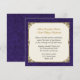 Vackert inbjudande från personligt bröllp i en rik lila-damm. Elegant grafik med en guld-vintage som tittar ram omger ett textområde med gräddfärgad. Text i guldbrun och svart är redot att anpassa sig till din speciella dag.