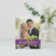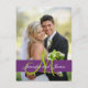 Lila Damask Wedding Photo Tack Postcard. Byt ut exempelfotot mot ett eget foto från bröllop, lägg till ett monogram och namn och tack för bröllop.