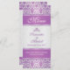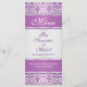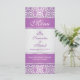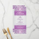 Mönstermönster för lila på ett silver-övertoningsbakgrundsraster för Bröllop Menu-rack.