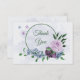 Lila dammiga blåa blommor grönt löv bröllop tack kort