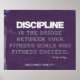 Den här fitness-motivationen poster på upplöst lila-denim och har ett fitness-citat av den motiverade författaren Felicity Luckey. Motiveringsincitatet för träning lyder: DISCIPLINE ÄR BRIDGE MELLAN DINA FITNESS MÅL OCH FITNESS FRAMGÅNG. ~ Felicity Luckey