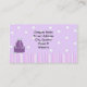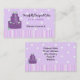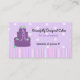 Elegant designat affärskort för en kaka som dekorerar affärer, bakning, bageri, hemmakontor... Lila med en tidskiktad kaka på en mjuk, mauve-poka-punktbakgrund. En gräns i det moderna lila rand accentuerar grund. Anpassa med önskad information.