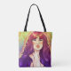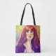En originalmålning av konstnären Haley Guilfoile (@lovenotestudios), "Lila Dimma Queen", skilde sig från denna hållbara väska.