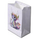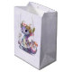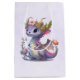 Giftväska med en illustration av en mytisk drake. Lila och blå skalor. En blommad krona i guld med horn och dess huvud. Magisk, roligt och vänlig.